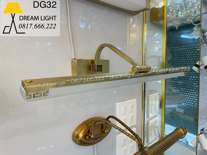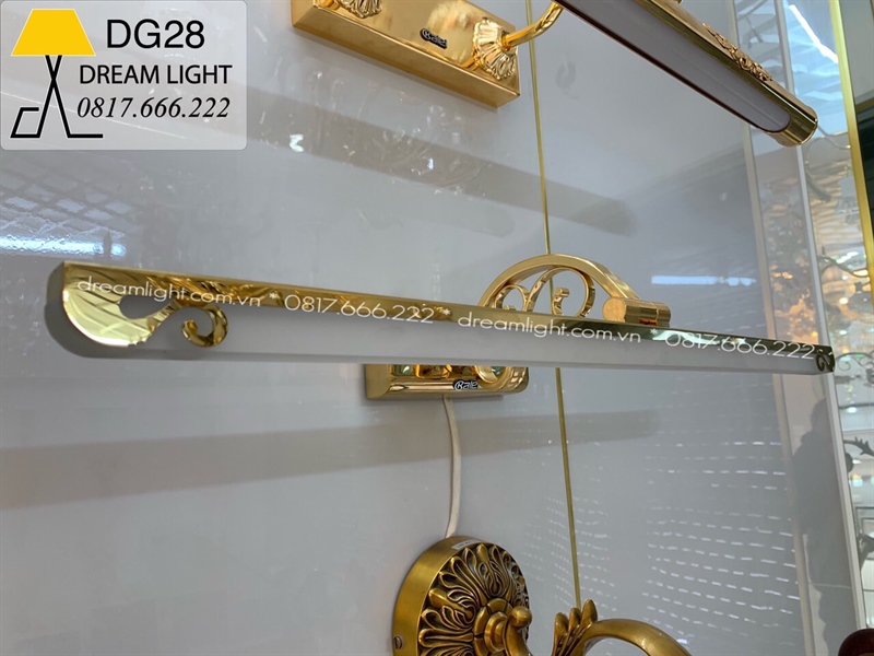 Đèn soi tranh inox vàng + đế hoa văn