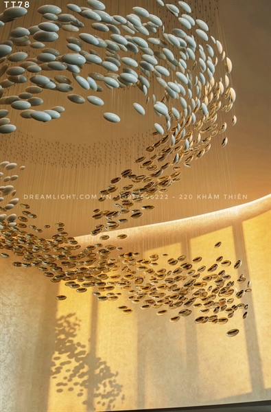 Lá đèn thả thủy tinh lông vũ tráng gương