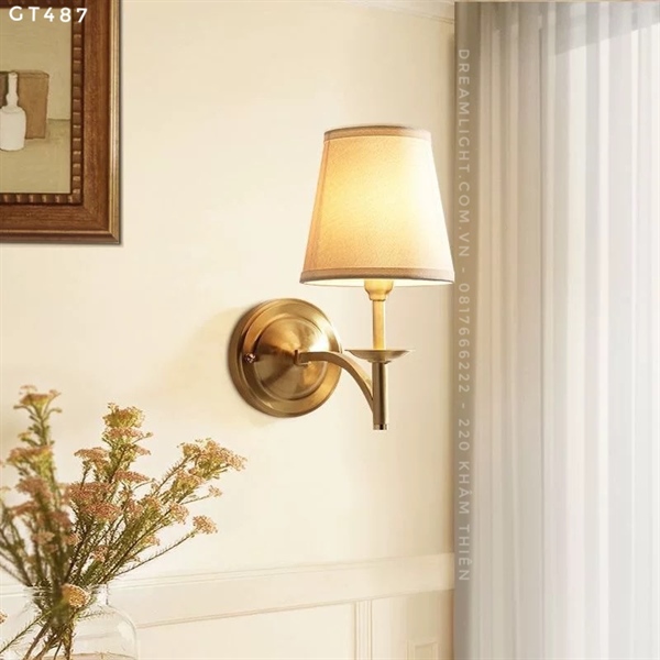Đèn tường khung đồng chao vải