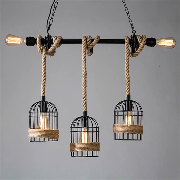 Đèn chùm dài 3 thả quấn dây thừng
